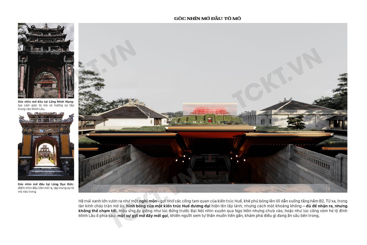 Cuối cùng, đồ án hướng đến một bảo tàng không chỉ trưng bày cổ vật, mà còn giải quyết các vấn đề di tích bằng cách tạo ra một “cầu nối” bổ trợ cho Đại Nội, đồng thời tái hiện chiều sâu văn hóa Huế trong ngôn ngữ kiến trúc đương đại. Công trình dung hòa giữa bảo tồn và phát triển, truyền thống và đổi mới, để di sản không chỉ được lưu giữ mà còn tiếp tục hiện hữu sống động trong đời sống hôm nay và mai sau.