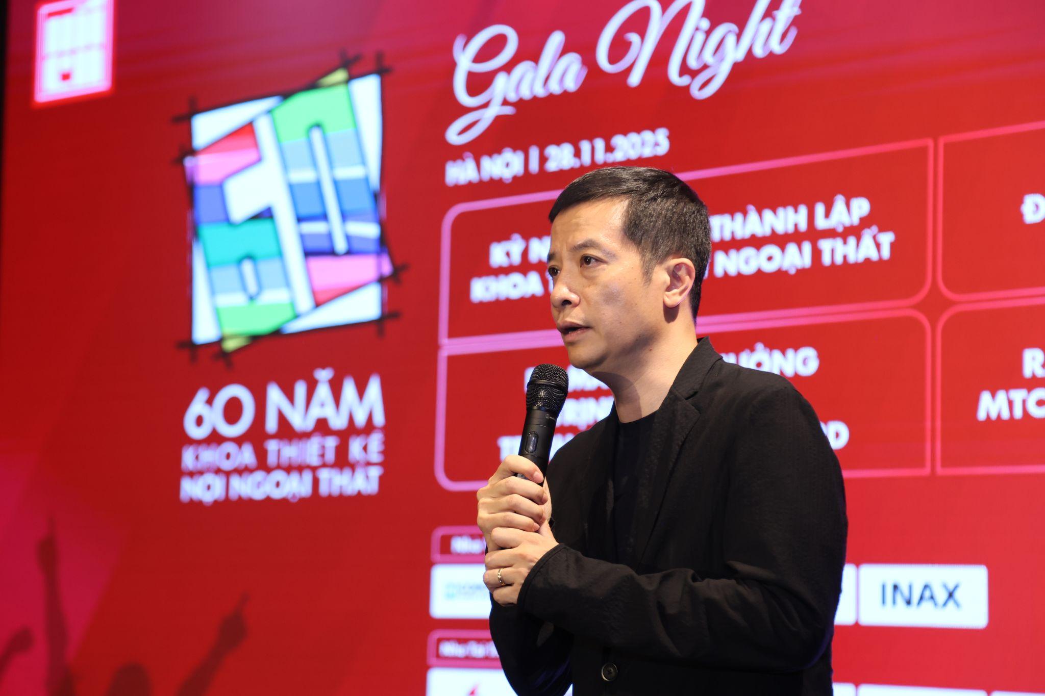 Sự kiện diễn ra trong không khí trang trọng với sự tham gia của lãnh đạo Nhà trường, đại diện các tổ chức nghề nghiệp, doanh nghiệp, các thế hệ giảng viên, cựu sinh viên và sinh viên của Khoa. Mở đầu chương trình là phần phát biểu khai mạc của TS. NTK Lưu Việt Thắng – Trưởng Khoa Thiết kế Nội Ngoại thất để hội trường cùng nhìn lại 60 năm phát triển của Khoa, nhấn mạnh những giá trị cốt lõi mà Khoa đã xây dựng, không chỉ trong việc đào tạo chuyên môn mà còn trong việc hình thành tư duy thẩm mỹ, trách nhiệm nghề nghiệp và bản lĩnh sáng tạo cho hàng chục nghìn sinh viên.